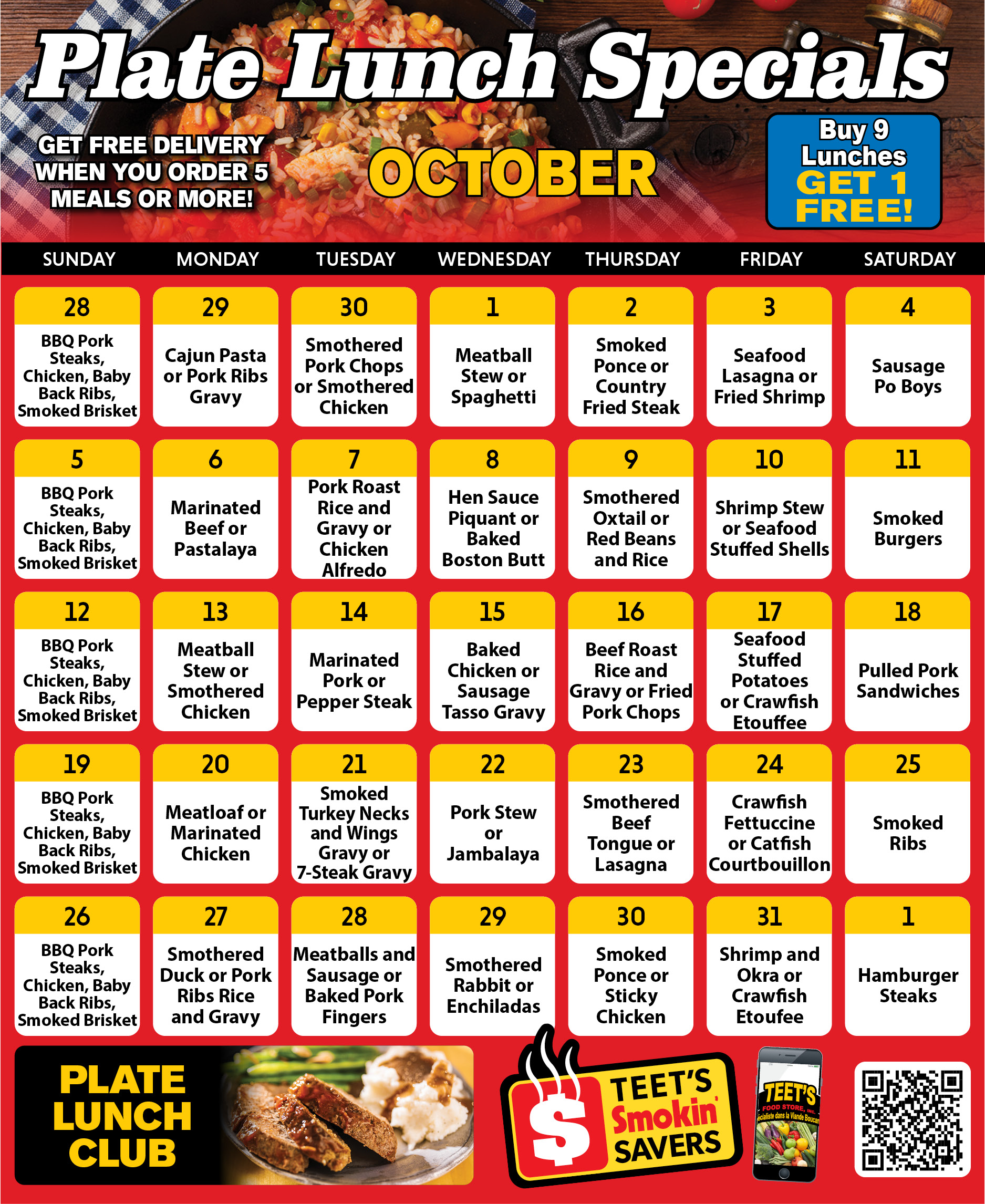 Buy 9 Meals and Get 1 Free with Smokin' Savers Hot Meal Club.